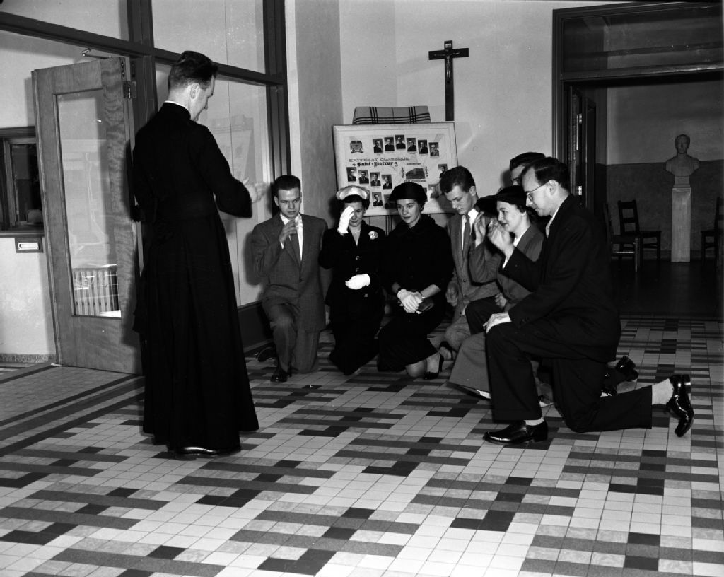 La bénédiction de Michel Gauvreau à l'église de Saint-Viateur dans le quartier d'Outremont à Montréal, 1956, Archives nationales à Montréal, Fonds Armour Landry, (06M,P97,S1,D14819-14819), Armour Landry.