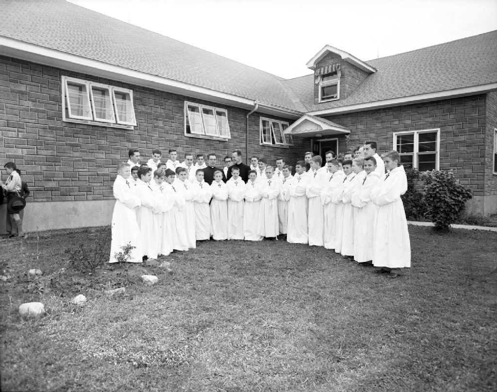 Michel Gauvreau et les petits chanteurs à l'église Saint-Thomas-de-Villeneuve à Saint-Hubert, Septembre 1956, Archives nationales à Montréal, Fonds Armour Landry, (06M,P97,S1,D14843-14844), Armour Landry.