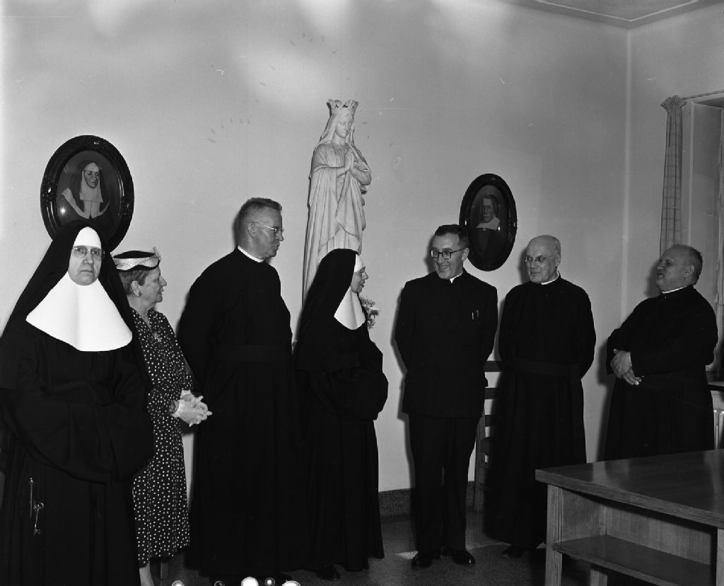 - Il s'agit d'un reportage sur la visite de monseigneur Frutaz à Montréal. Ce dossier contient donc des images de sa visite aux différentes congrégations religieuses de Montréal (Les soeurs de la providence, les Ursulines, les soeurs de Sainte-Anne et les religieuses de Notre-Dame) et sa rencontre avec différents religieux dont le cardinal Paul-Émile Léger. Enfin nous pouvons voir la couverture d'un des albums de Jacques viger (Premier maire de Montréal) consacré aux costumes des religieuses