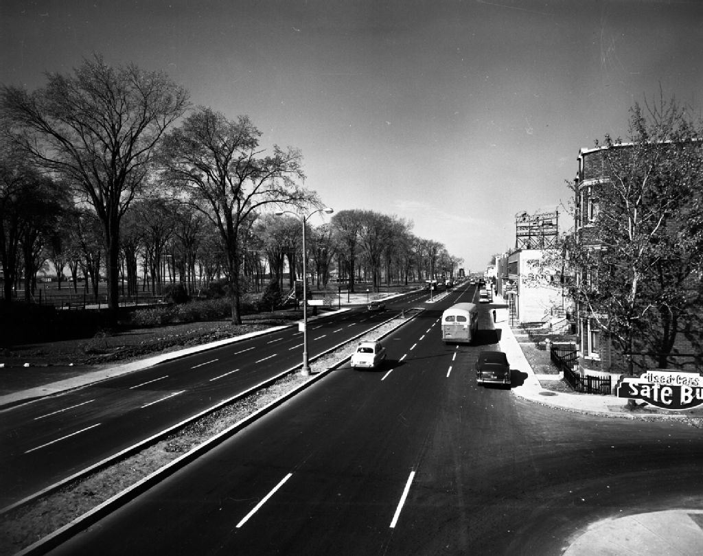 Le boulevard Saint-Laurent à la hauteur du parc Jarry à Montréal, [Vers 1958], Archives nationales à Montréal, Fonds Armour Landry, (06M,P97,S1,D15464-15464), Armour Landry.