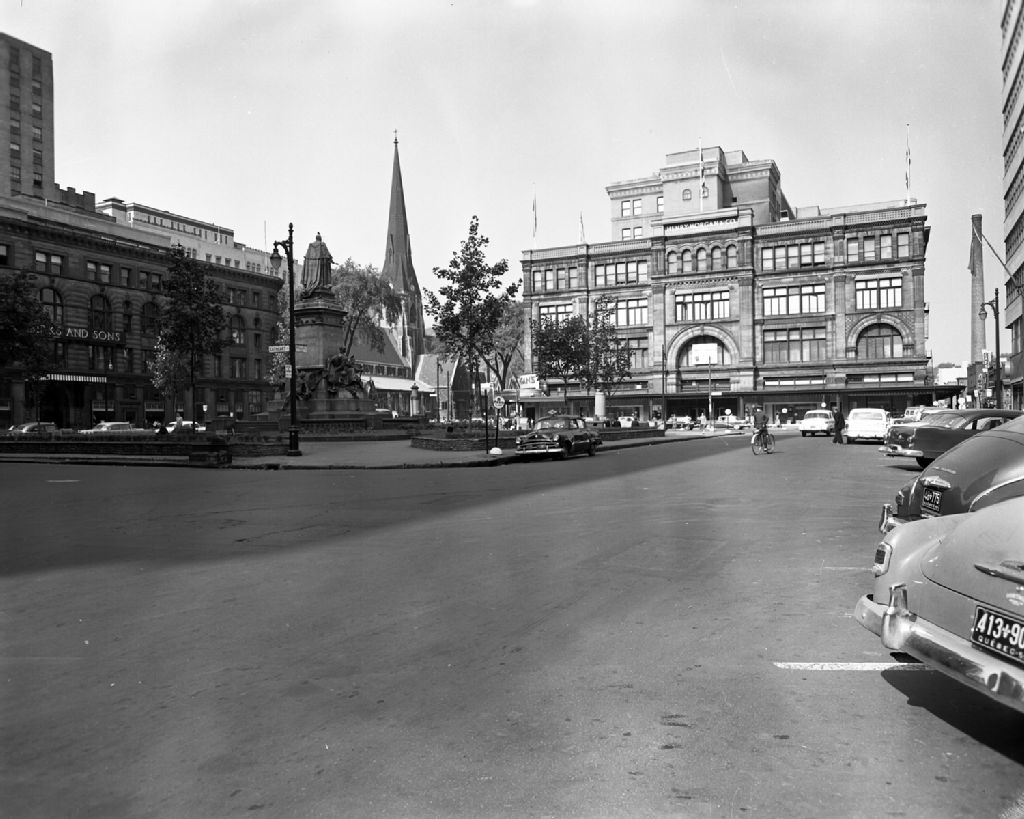 Le magasin Henry Morgan & Co Limited sur le square Philips à l'intersection des rues Sainte-Catherine Ouest et Union à Montréal, 1955, Archives nationales à Montréal, Fonds Armour Landry, (06M,P97,S1,D15524-15524), Armour Landry.