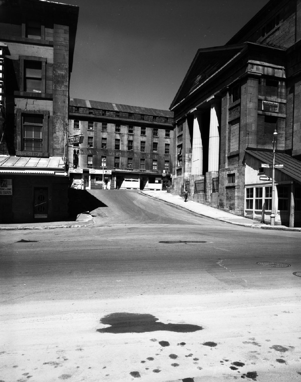Le marché Bonsecours à l'angle des rues Commissioners (devenu rue de la Commune Est) et du Marché-Bonsecours dans le Vieux-Montréal, 1962, Archives nationales à Montréal, Fonds Armour Landry, (06M,P97,S1,D15638-15638), Armour Landry.