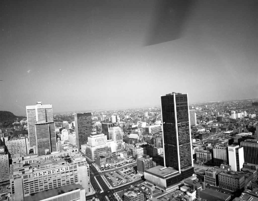 - Nous remarquons les édifices de la Banque Royale et Bell, côte du Beaver-Hall; de la Place Bonaventure rue de la Gauchetière; de la Tour de la Bourse, square Victoria; de la Place Ville-Marie, de l'Architect Building, boulevard René-Lévesque Ouest; de l'édifice Aldred, place d'Armes