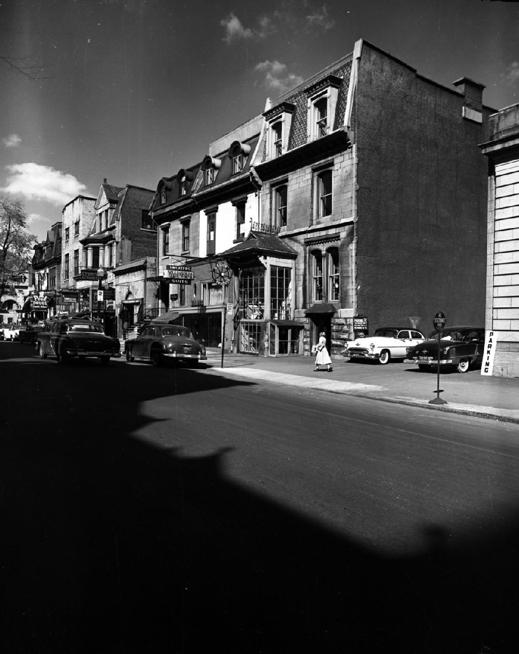 Des commerces dans la rue Peel à Montréal, 1949, Archives nationales à Montréal, Fonds Armour Landry, (06M,P97,S1,D15709-15709), Armour Landry.
