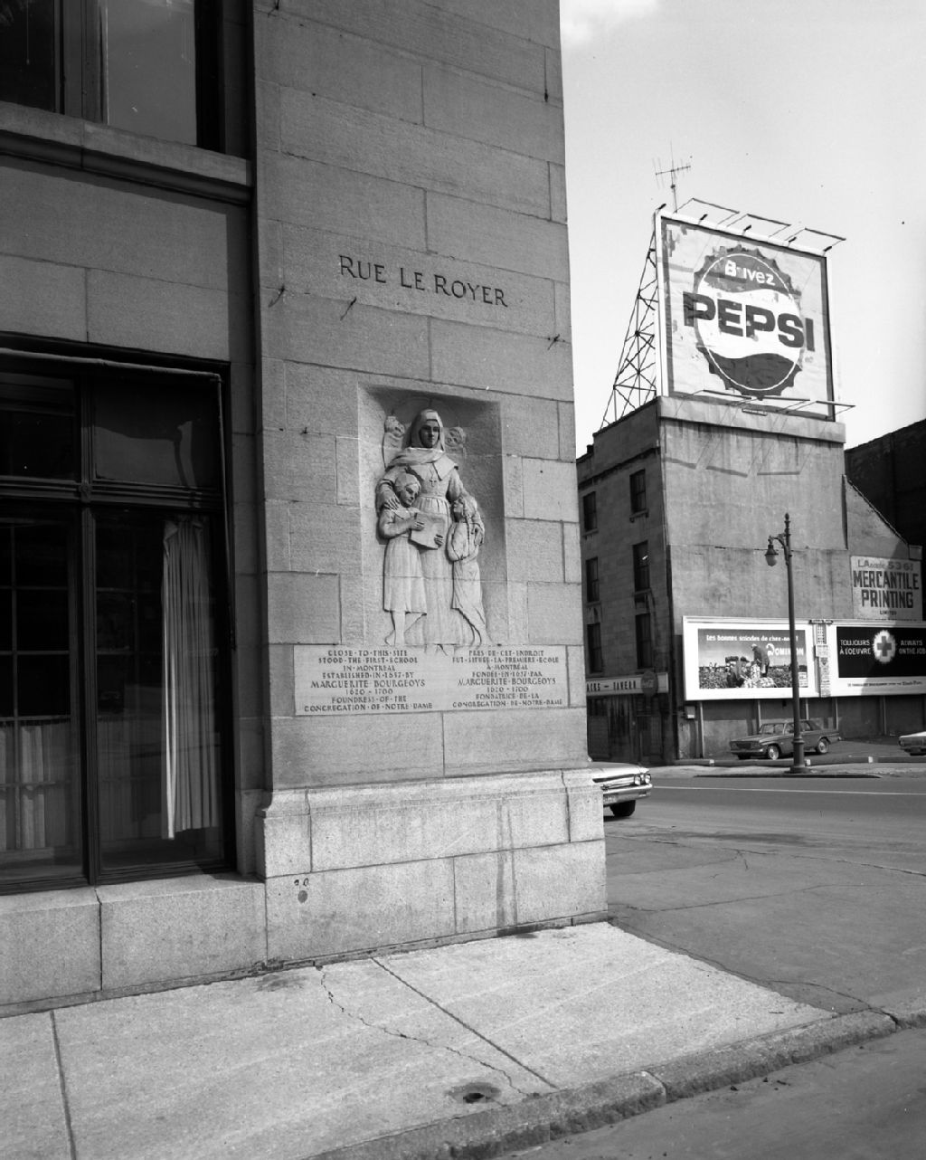 Un monument à Marguerite Bourgeoys rue Royer dans le Vieux-Montréal
