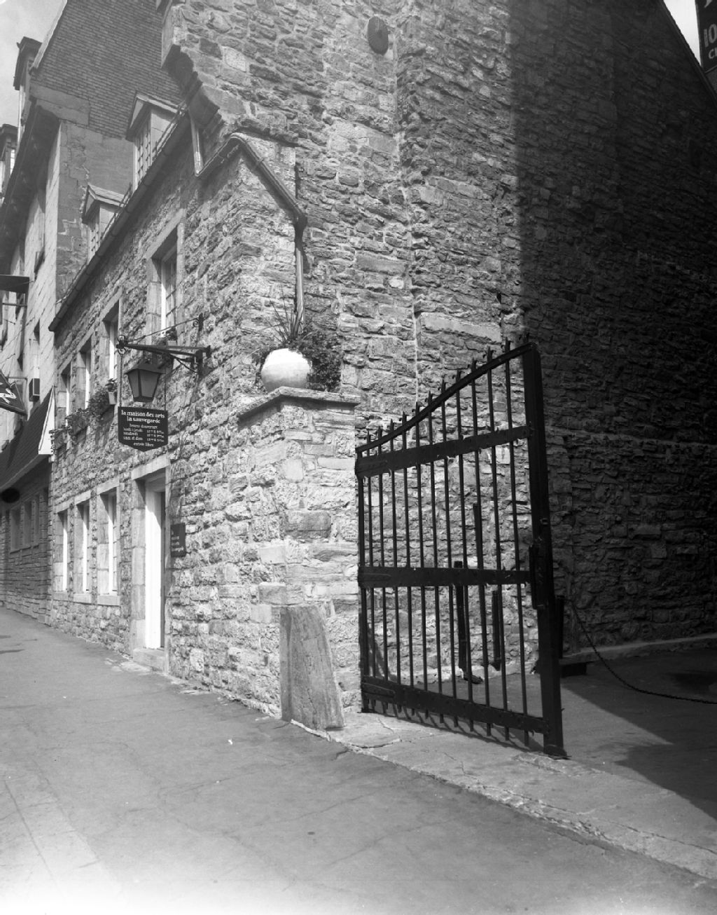 La maison des arts la Sauvegarde à l'angle des rues Notre-Dame Est et Saint-Vincent dans le Vieux-Montréal, 22 juillet 1966, Archives nationales à Montréal, Fonds Armour Landry, (06M,P97,S1,D15772-15773), Armour Landry.
