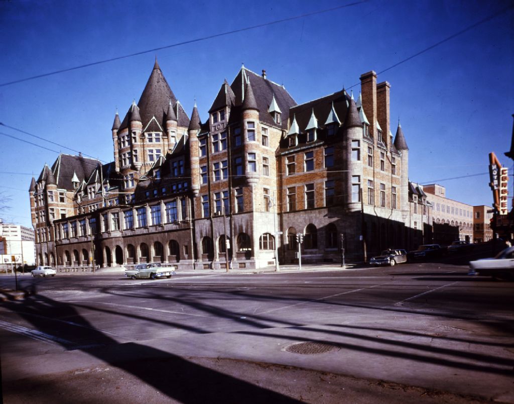 La gare Viger à l'angle des rues Saint-Antoine Est et Saint-Hubert dans le Vieux-Montréal