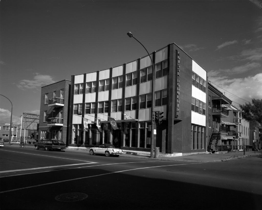 - Il s'agit probablement de clichés ayant servit à la publication du rapport annuel de la Caisse populaire. À l'angle des rues Ontario Est et Dézéry on remarque la présence de l'église de la Nativité de la Sainte-Vierge Hochelaga