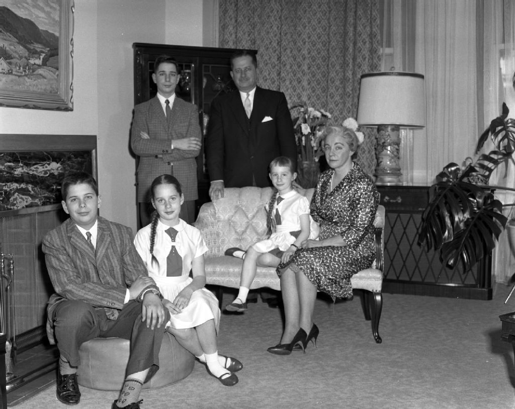 Dans le contexte familial, photographies de la benjamine de la famille Daniel Johnson (Diane Johnson) lors de sa première communion