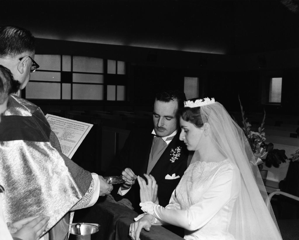 - Le couple est photographié à l'intérieur à la maison familiale, devant la table des cadeaux, à l'église et lors de la réception