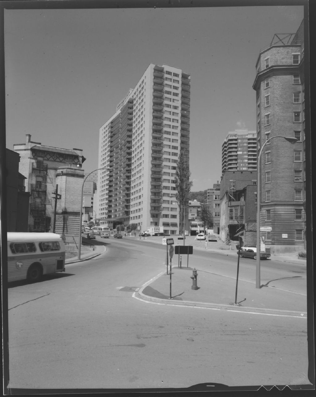 Immeuble d'habitations La Régence à l'angle du chemin de la Côte-des-Neiges et de l'avenue Seaforth, quartier Côtes-des-Neiges à Montréal, 11 juillet 1972, Archives nationales à Montréal, Fonds Armour Landry, (06M,P97,S1,D18258-18260), Armour Landry.