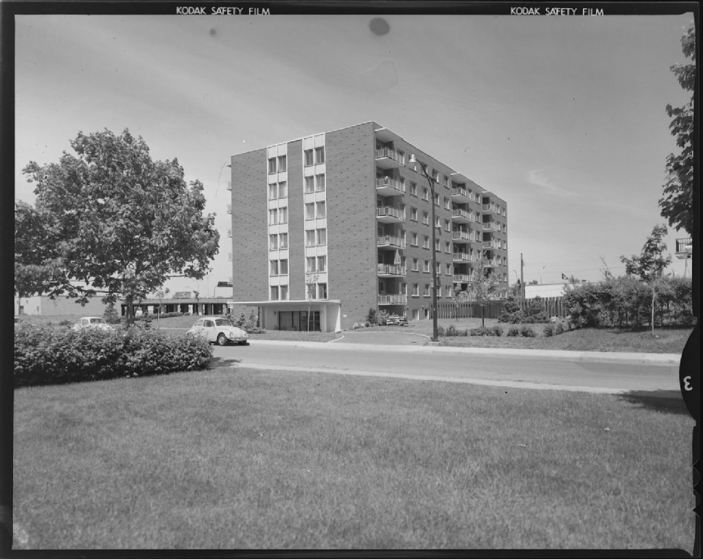 Immeuble d'habitations Glengarry situé au 75 rue Glengarry, ville Mont-Royal à Montréal, [Vers 1970], Archives nationales à Montréal, Fonds Armour Landry, (06M,P97,S1,D18281-18282), Armour Landry.