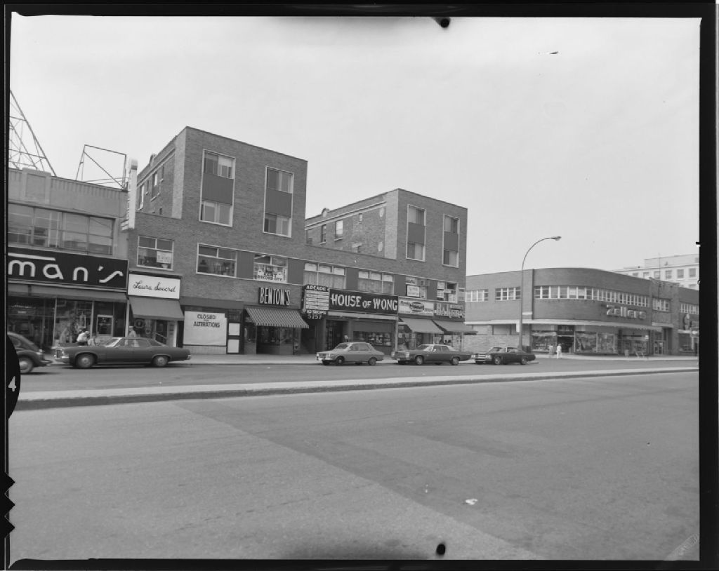 Parmi les commerces installés dans cet édifice, propriété de l'agence immobilière Mutual Realties, se trouvent le magasin de chaussures Baker's, le magasin de vêtements Benton's, la confiserie Laura Secords et le restaurant House of Wong. Un commerce voisin appartient à la chaîne de magasins Zellers