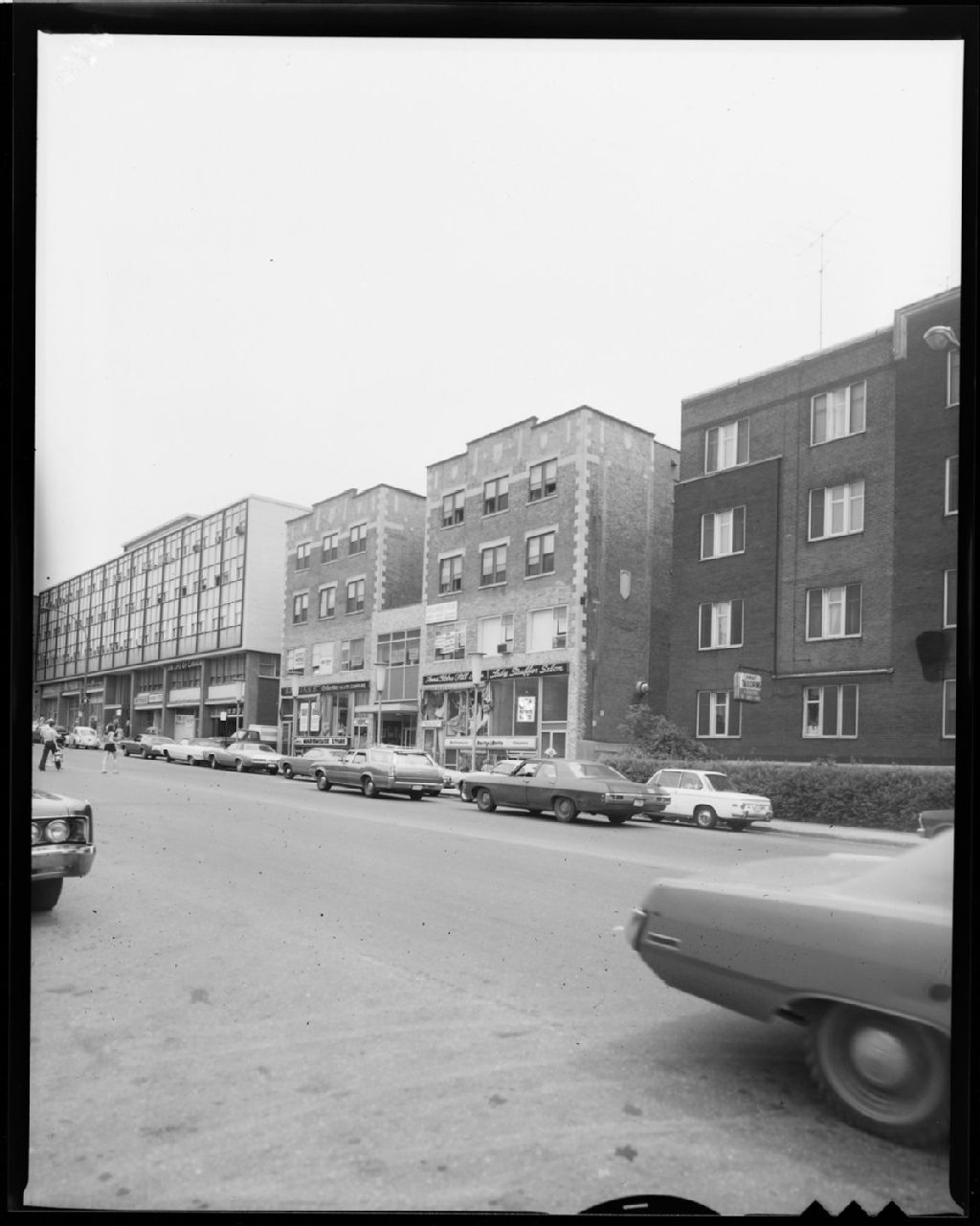 Édifice commercial situé au 4968 chemin Queen-Mary, entre la rue Lemieux et l'avenue Westbury à Montréal, 29 juin 1973, Archives nationales à Montréal, Fonds Armour Landry, (06M,P97,S1,D18397-18397), Armour Landry.