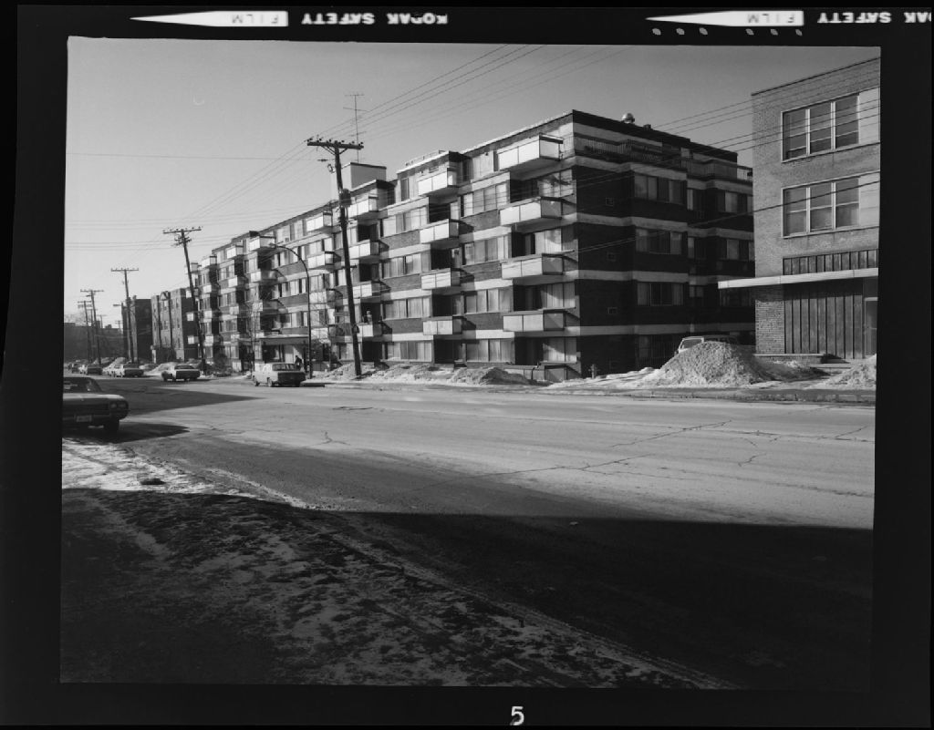 Immeuble d'habitations Le Hampstead situé 5765, chemin de la Côte-Saint-Luc, Hampstead, Montréal, 6 février 1973, Archives nationales à Montréal, Fonds Armour Landry, (06M,P97,S1,D18420-18421), Armour Landry.