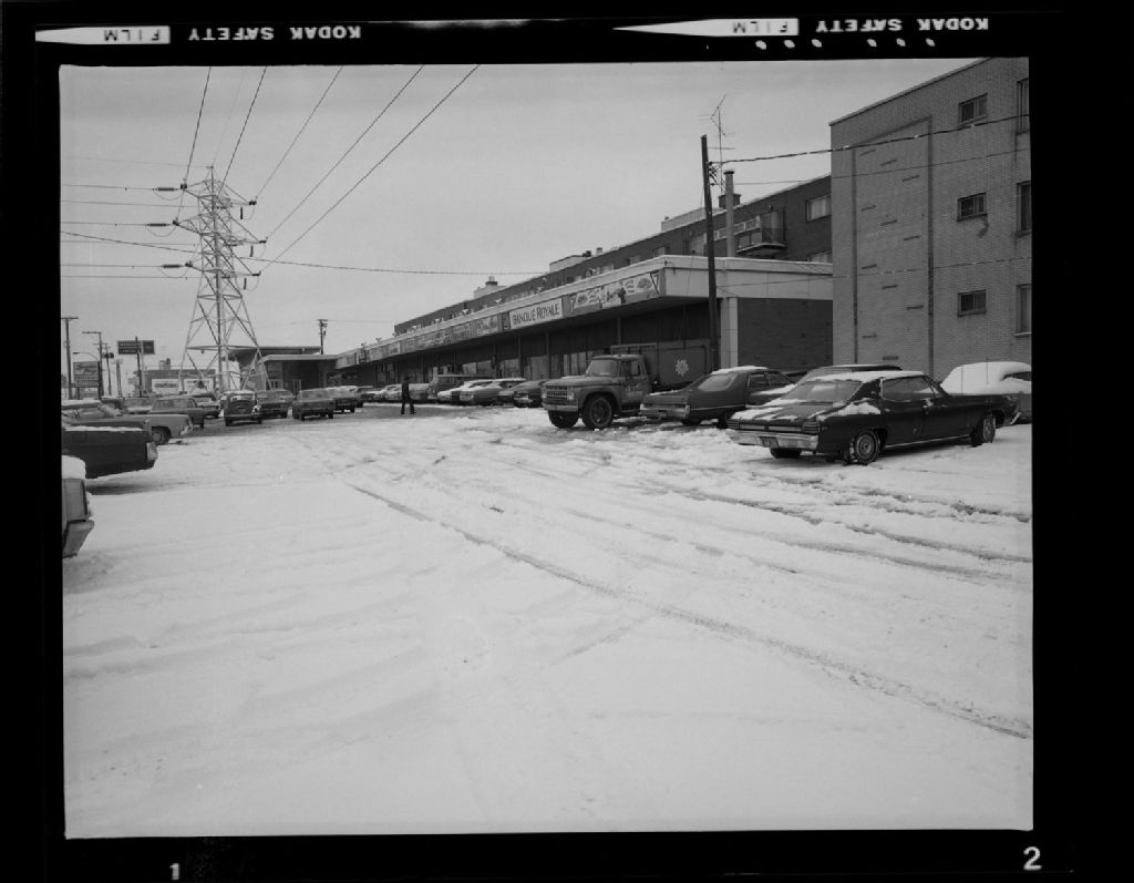 - Parmi les commerces de cet ensemble, propriété de l'agence immobilière Mutual Realties, nous retrouvons, entre autres, une succursale de la Banque royale, un barbier, un nettoyeur de vêtements. Les négatifs n°18427 et 18428 représentent des immeubles d'habitations