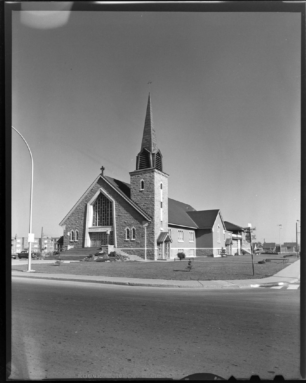 - L'église Saint-Damase située sur la 20e Avenue à l'angle avec le boulevard Crémazie Est, quartier Saint-Michel à Montréal