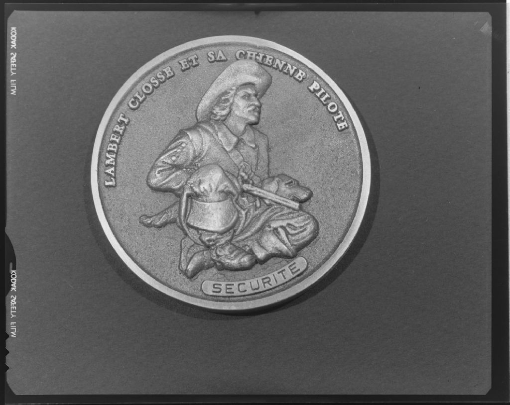 Médaillon représentant Lambert Closse et sa chienne Pilote