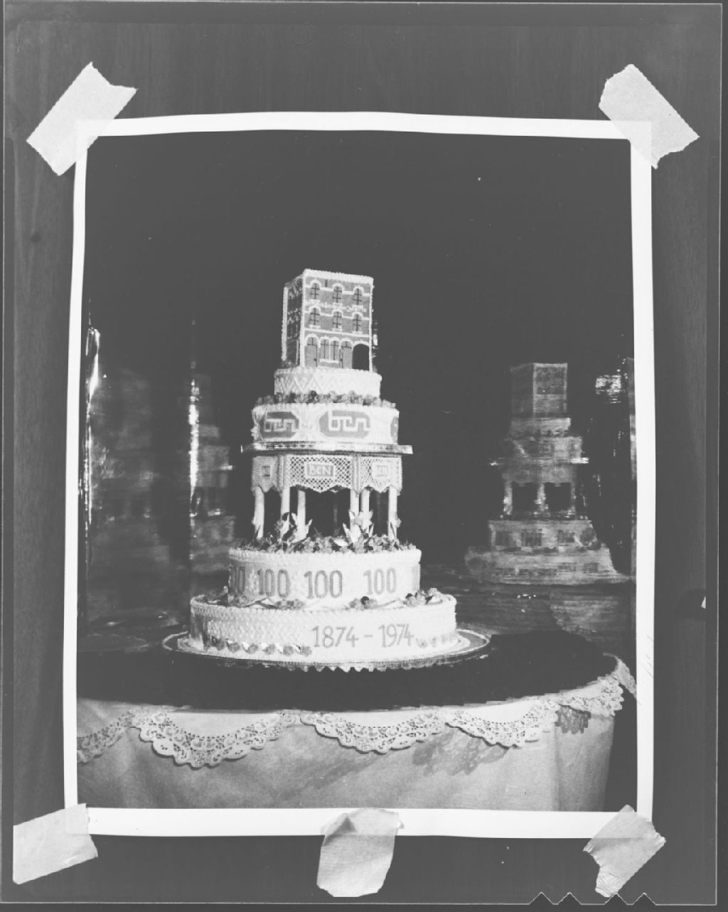 Reproduction d'un négatif couleur du gâteau célébrant le centenaire de la banque d'Hochelaga de Joliette