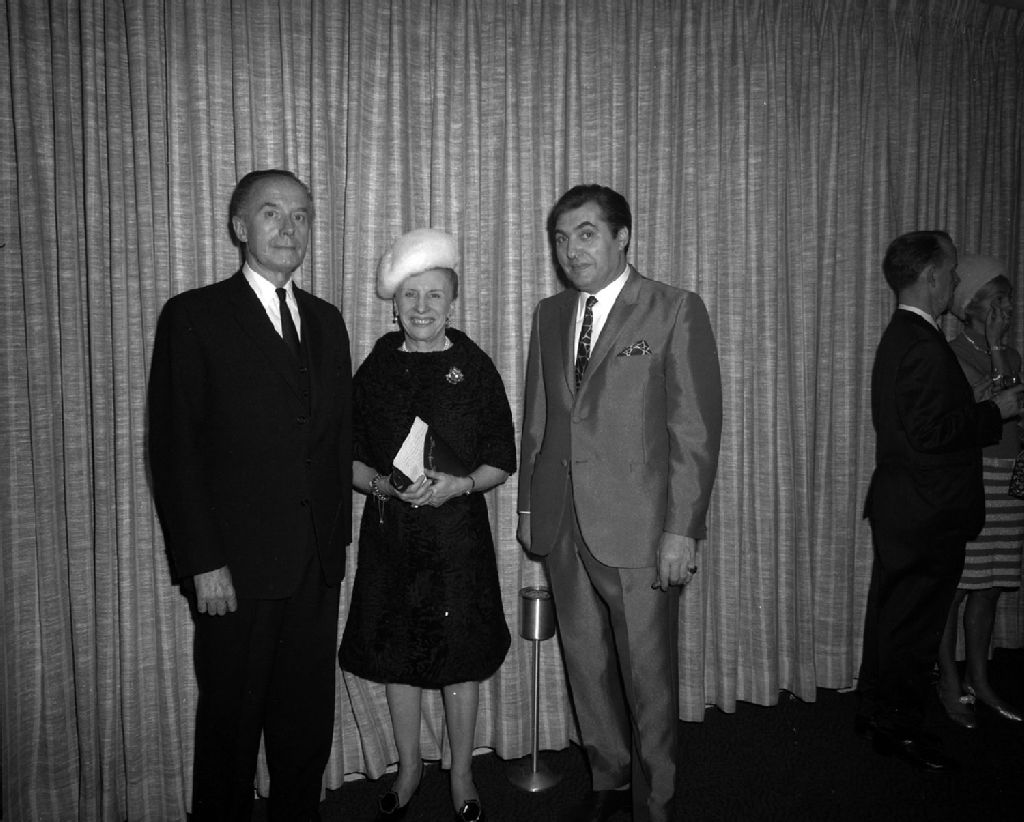 Réception de l'Association France-Canada au Salon du tourisme français. L'ambassadeur de France, Pierre Siraud, le président de l'Association France-Canada, Pierre Gabin, ainsi Mme A.-D. Archambault sont présents pour l'évènement