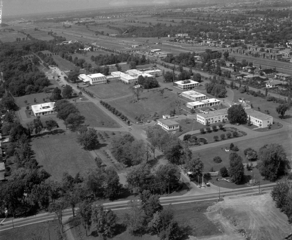 - Ce dossier présente, entre autres, des vues aériennes de l'Institut de microbiologie et d'hygiène, devenue l'INRS-Institut Armand-Frappier, boulevard des Prairies à Laval, en août 1967 (P3308-3318) et en août 1973 (P3305-3307); un dîner soulignant le départ à la retraite de Rosaire Hudon, trésorier de l'Institut de microbiologie et d'hygiène de Montréal, au salon Prince-de-Galles de l'hôtel Windsor, rue Peel à Montréal, en décembre 1973 (P3319-3340); une séance de remise de certificat de service au cours d'une réception de l'Institut à la salle de l'hôtel de ville de Mont-Royal (3341-3350)