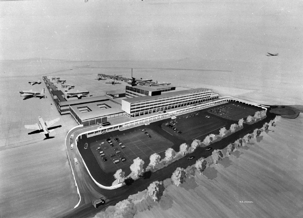 Plan de l'aéroport de Dorval, devenu l'aéroport international Pierre-Elliott-Trudeau de Montréal, réalisé par la firme d'architectes Larose et Larose