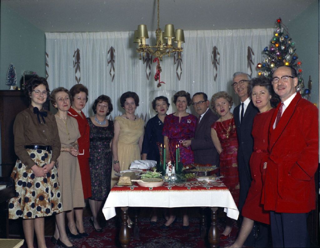 - Ce dossier présente, entre autres, Yvon Meunier au cours d'une réception en décembre 1962 (P3905-3908); 2 jeunes femmes, probablement les filles d'Yvon Meunier en juin 1964 (P3909-3910); des photo-passeports de M. et Mme Yvon Meunier, du secrétariat de la Chambre de commerce du district de Montréal, rue Saint-Jacques à Montréal en février 1952 (P3911-3913); une réception soulignant le 25è anniversaire de mariage de M. et Mme Yvon Meunier chez Maurice Mousseau (P3914-3915); une photo de la famille d'Yvon Meunier prise pour la revue "La vie dans le Christ et dans l'Église" en 1958 (P3916); ainsi qu'Yvon Meunier et les membres du personnel de son entreprise au cours d'une fête en décembre 1957 (P3917-3918)