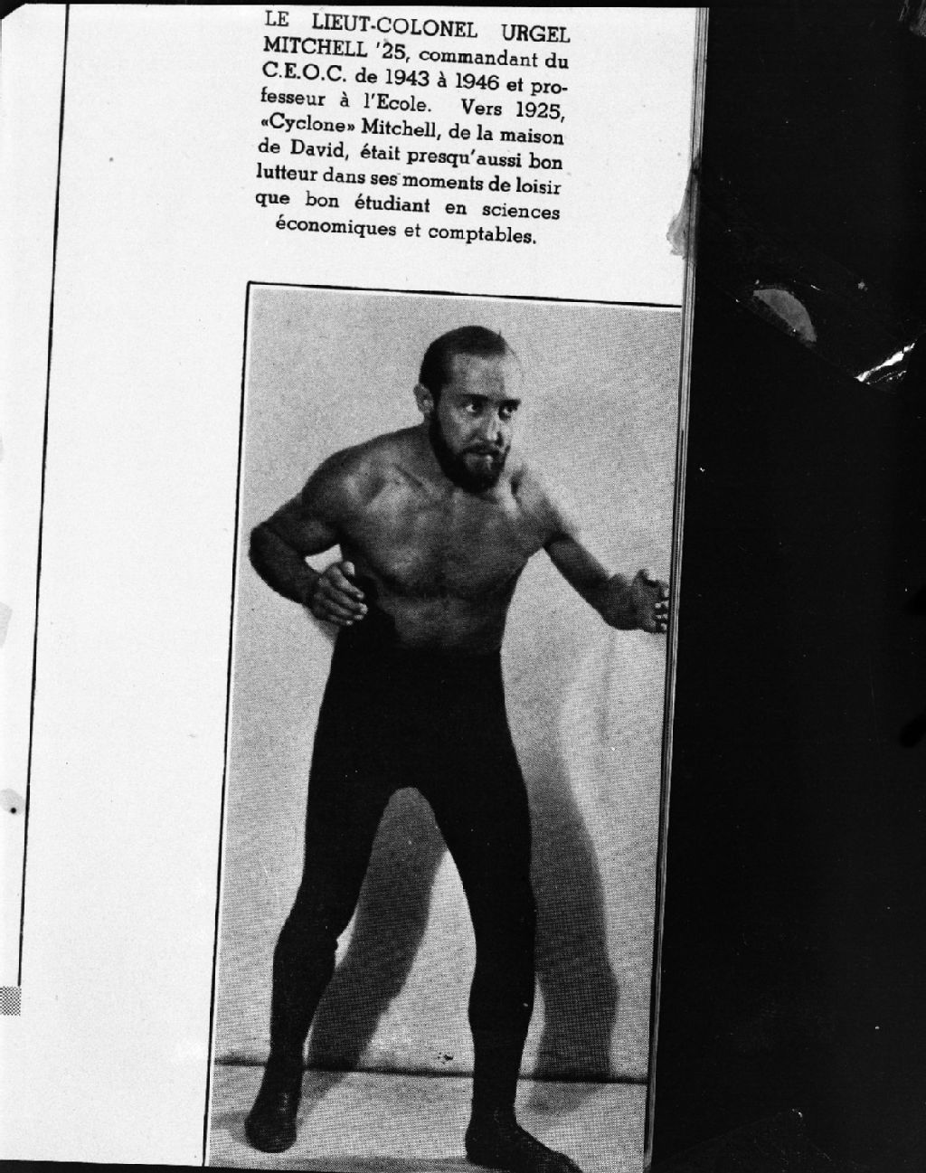 Reproduction d'un article tiré d'une publication de l'École des hautes études commerciales (HEC), portant sur le lieutenant-colonel Urgel Mitchell, professeur aux HEC et lutteur amateur
