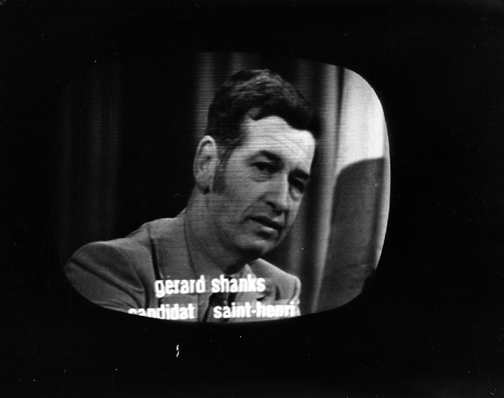 Gérard Shanks, candidat dans la circonscription électorale provinciale de Saint-Henri, à la télévision de la Société Radio-Canada