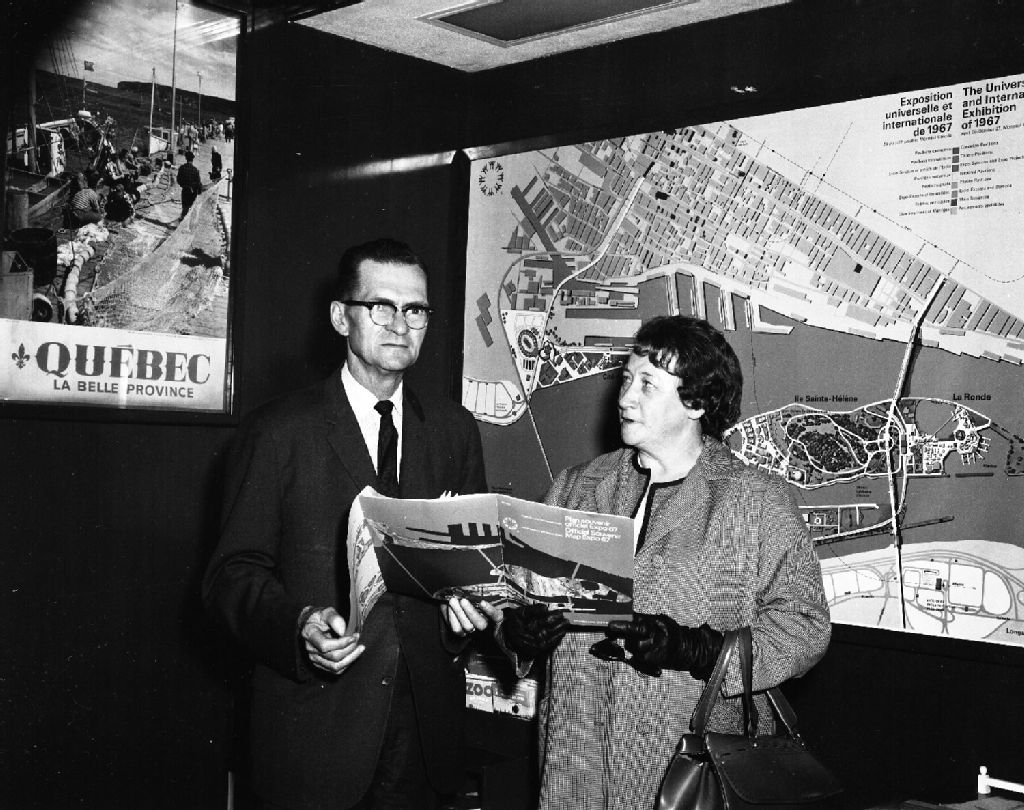 M. et Mme Hébert de la ville d'Arvida, devenue ville de Saguenay, à l'hôtel Reine-Élizabeth, boulevard Dorchester, devenu René-Lévesque, à Montréal