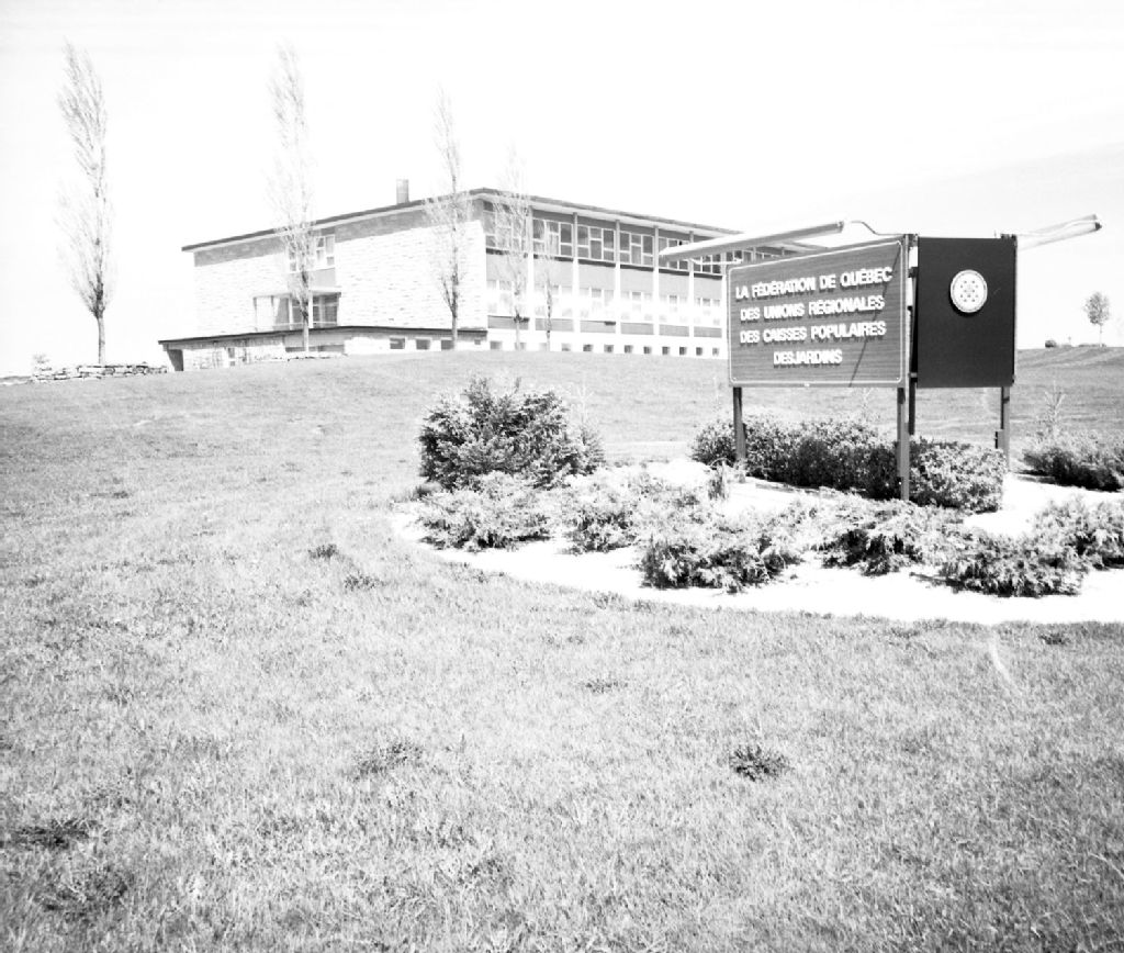 Le siège social la Fédération de Québec des Unions régionales des Caisses populaires Desjardins, avenue des Commandeurs à Lévis, 24 mai 1970, Archives nationales à Montréal, Fonds Armour Landry, (06M,P97,S1,D5105-5105), Armour Landry.