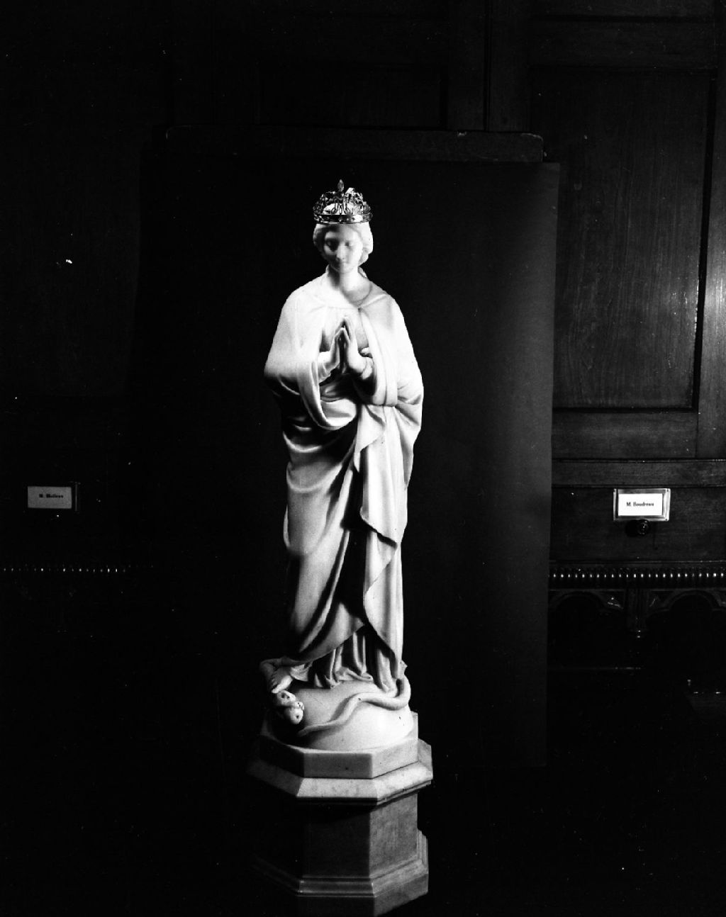 Statue de la Sainte Vierge, don de Pie IX, à l'église Notre-Dame, [Vers 1965], Archives nationales à Montréal, Fonds Armour Landry, (06M,P97,S1,D5160-5160), Armour Landry.
