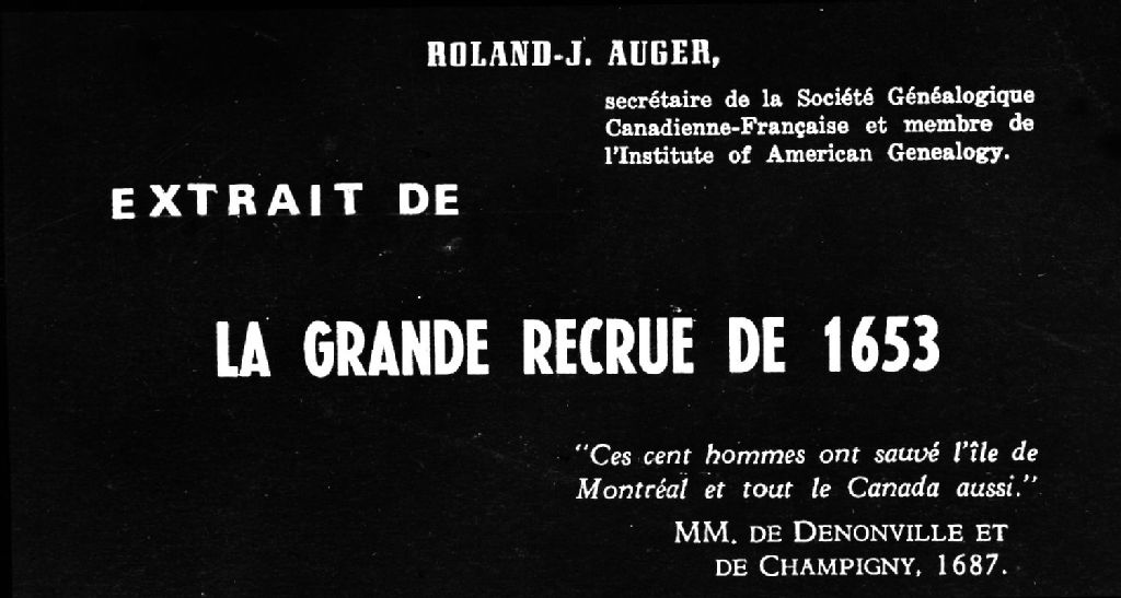 - Cette exposition fut organisée par la Société historique de Montréal en collaboration avec la Société généalogique canadienne-française. Les photos et les textes sont l'oeuvre d'Armour Landry. Ce dossier présente, entre autres, les armoiries du Prieuré de Saint-Thomas de La Flèche (P5197-5198); une affiche publicitaire d'une émission présenté sur les ondes de CBF 690 intitulée "Du Saint-Laurent aux sources françaises" animé entre autre par le père Déziel (P5196) ainsi que les armoiries de Jérôme Le Royer de la Dauversière, fondateur de Montréal et des Religieuses hospitalières de Saint-Joseph (P5203)