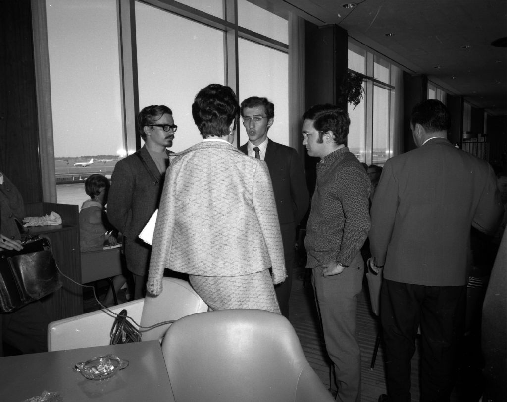 - Arrivée d'un groupe d'étudiants français à l'aéroport de Dorval à Montréal pour un stage en sciences commerciales