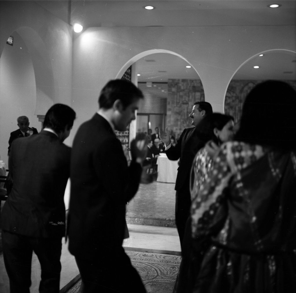 Des visiteurs sont réunis au Pavillon de Tunisie au cours de l'Expo 67, île Notre-Dame à Montréal, [Vers 1967], Archives nationales à Montréal, Fonds Armour Landry, (06M,P97,S1,D5466-5467), Armour Landry.