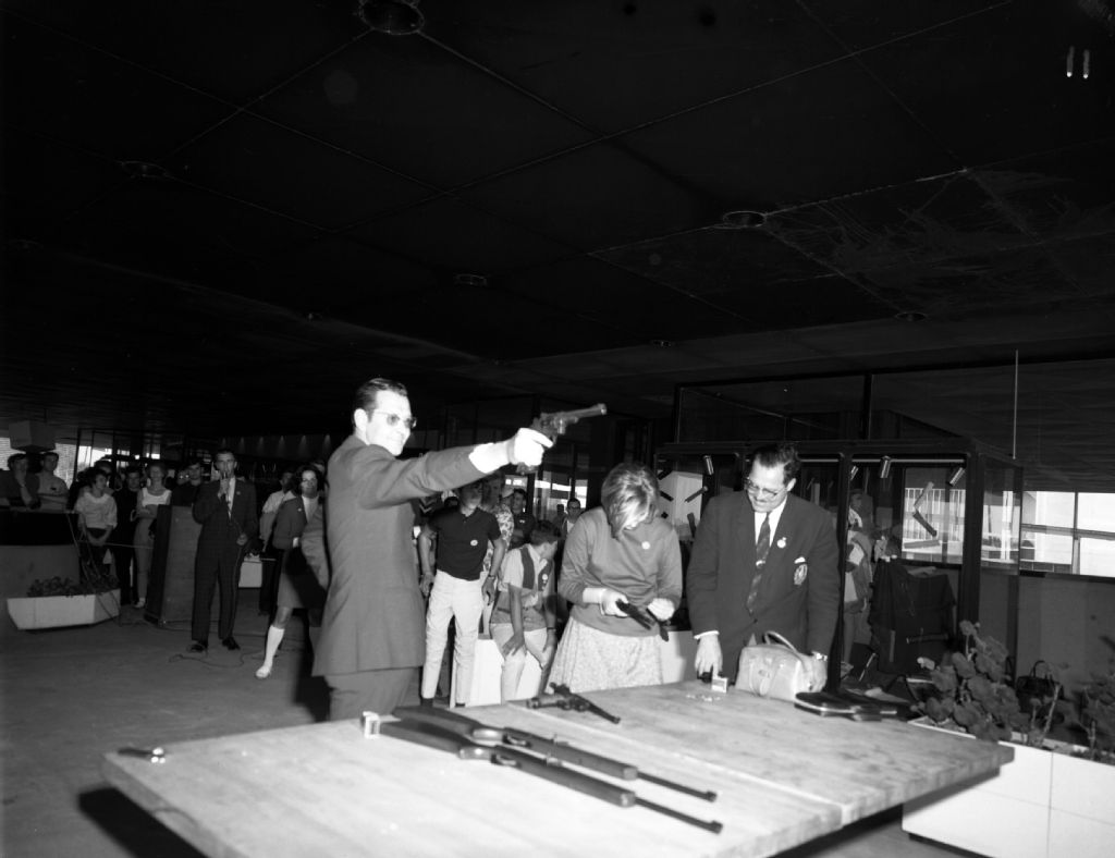 Compétition de tir à la volée du Club des jeunes au Pavillon du Québec, à l'exposition permanente Terre des Hommes à Montréal