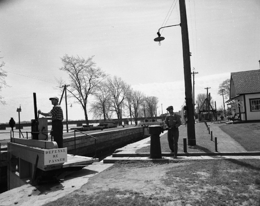 Des canaux et des écluses à Saint-Jean-sur-Richelieu, Mai 1958, Archives nationales à Montréal, Fonds Armour Landry, (06M,P97,S1,D6203-6205), Armour Landry.