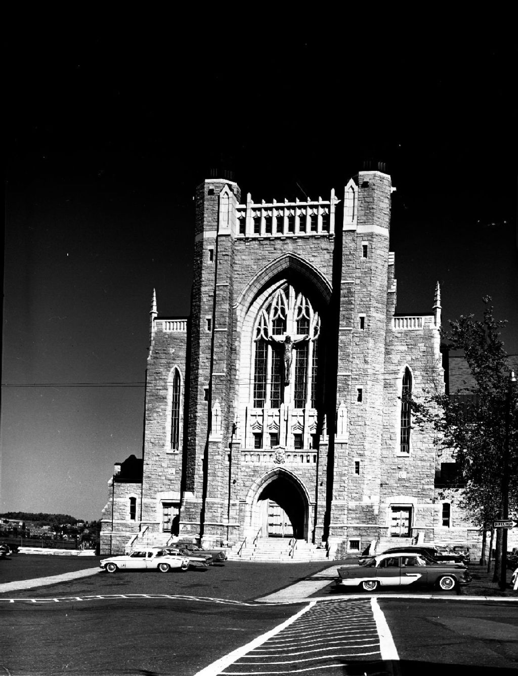 - Il s'agit de la façade de l'église Saint-Michel de Sherbrooke ainsi que d'une sculpture représentant des violonistes