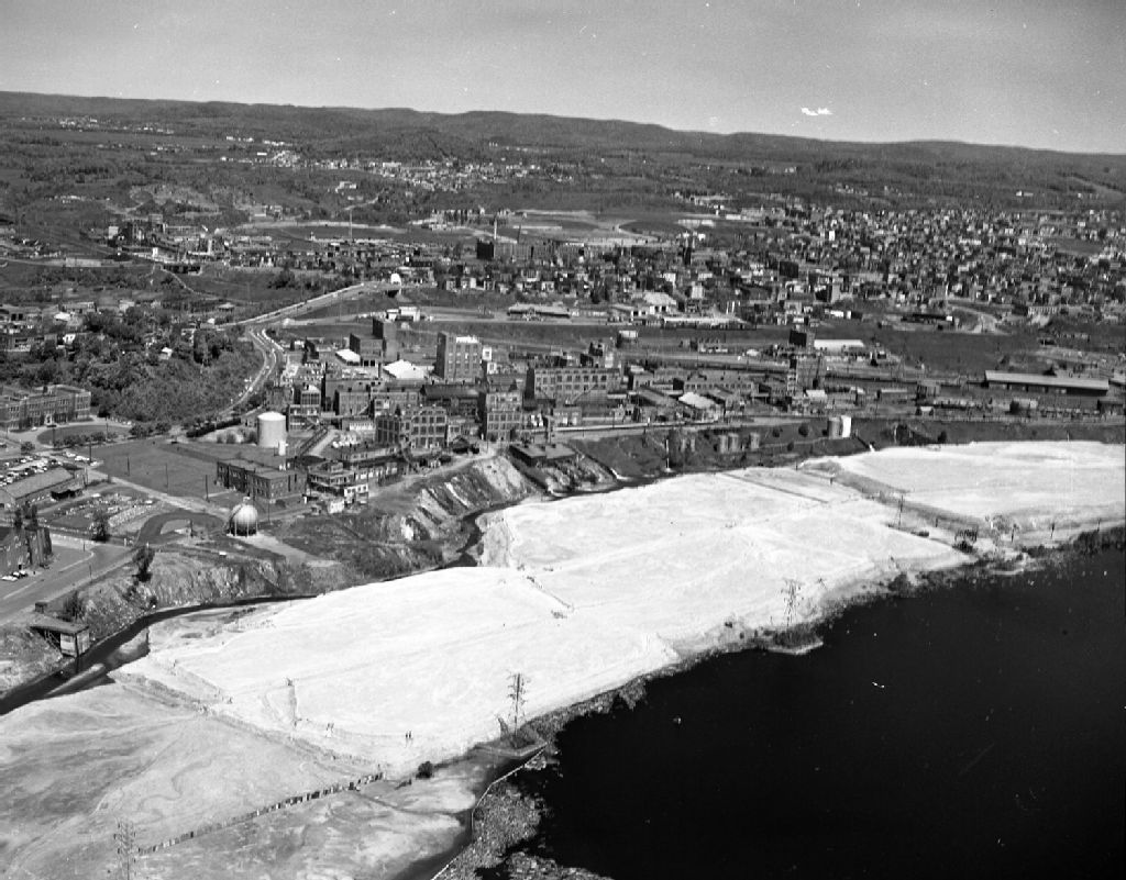 Vues aériennes de la ville de Shawinigan avec l'église et les usines Alcan