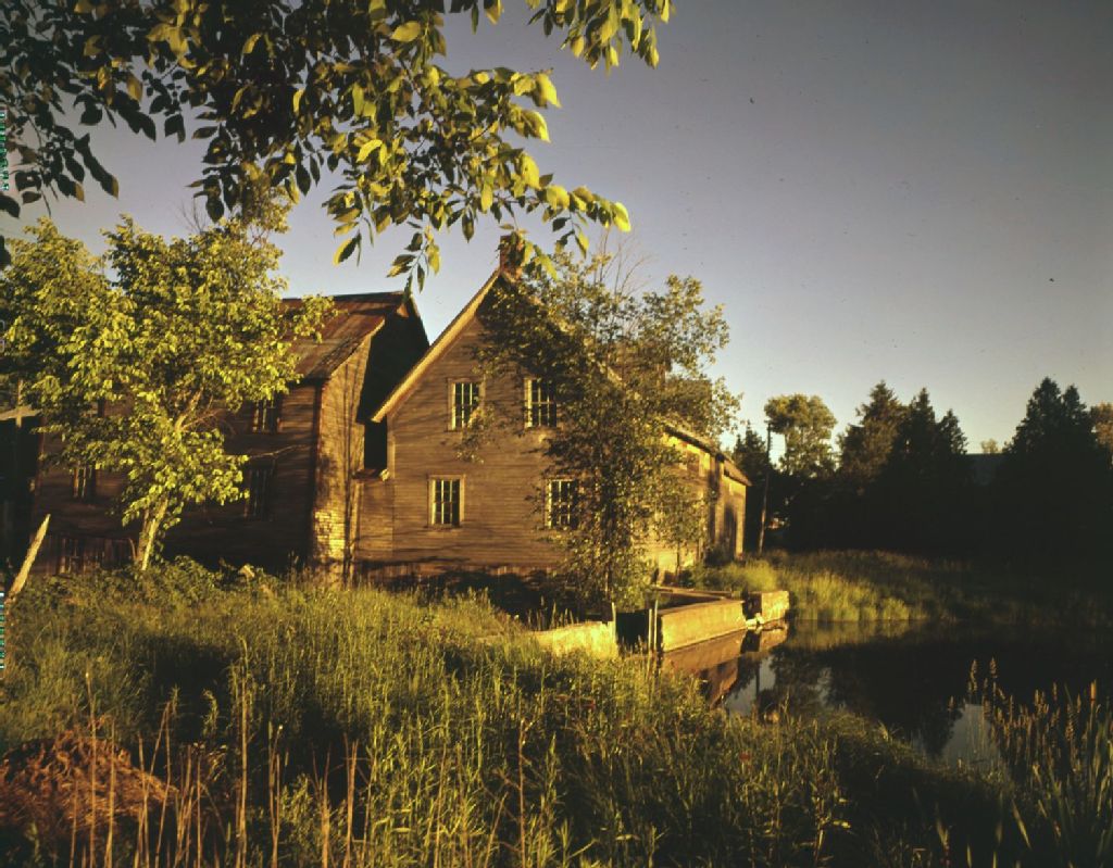 Village de Marbleton devenu Dudswell. Moulin vu au soleil couchant, [Vers 1960], Archives nationales à Montréal, Fonds Armour Landry, (06M,P97,S1,D6756-6756), Armour Landry.