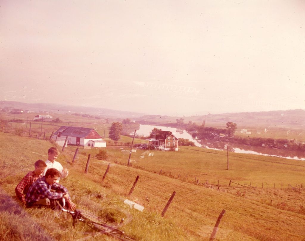 Jeunes garçons avec une bicyclette dans une vallée de la Beauce près de la ville de Sainte-Marie