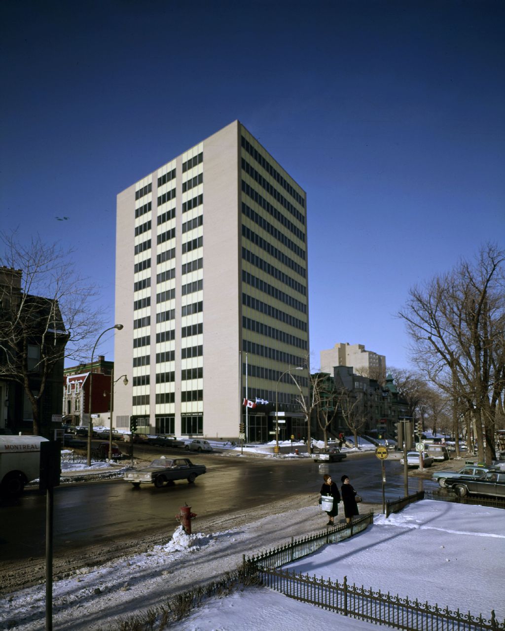 Immeuble au coin de la rue Sherbrooke et Saint-Hubert