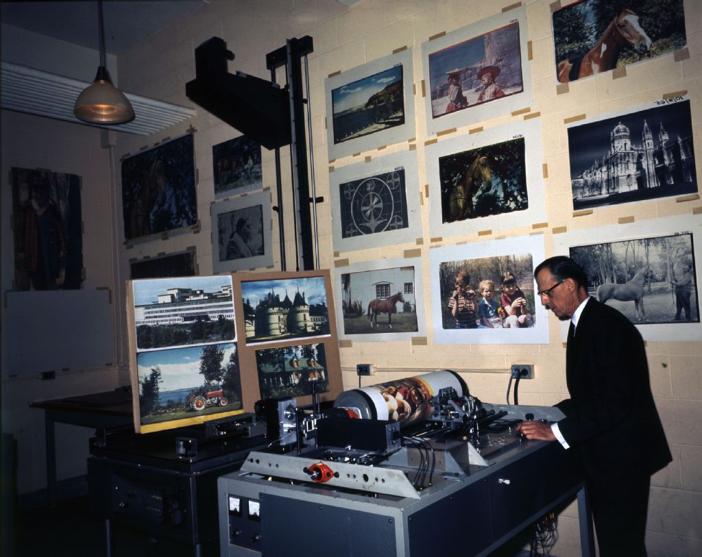 Homme travaillant sur un appareil de développement photographique dans un laboratoire, [Vers 1969], Archives nationales à Montréal, Fonds Armour Landry, (06M,P97,S1,D7404-7404), Armour Landry.