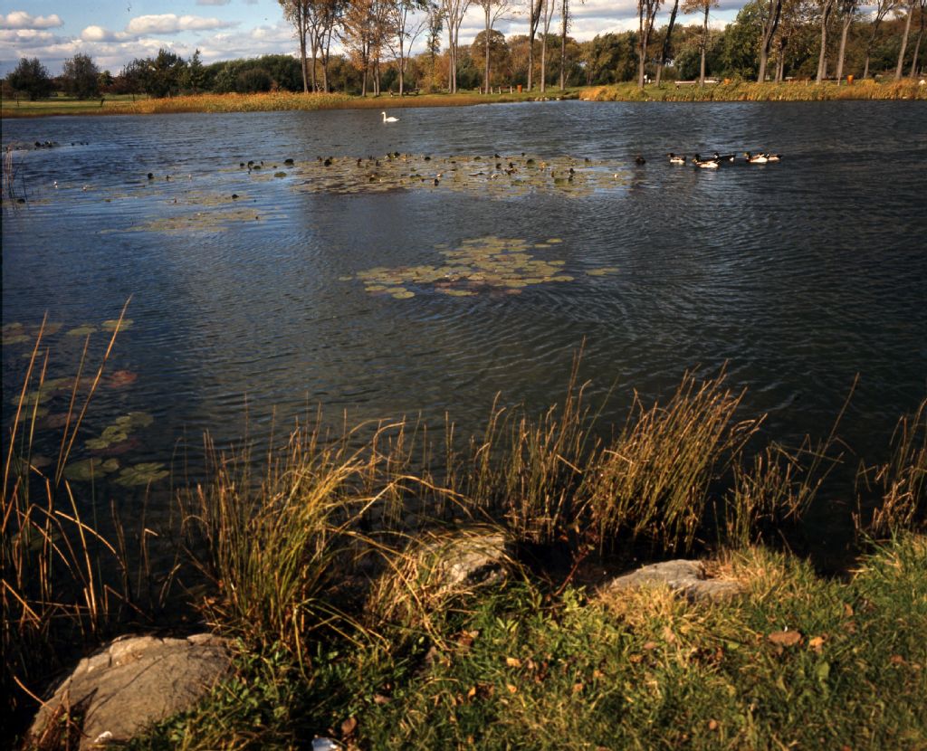 Canards sauvages et nénuphars sur l'étang au Jardin botanique de Montréal