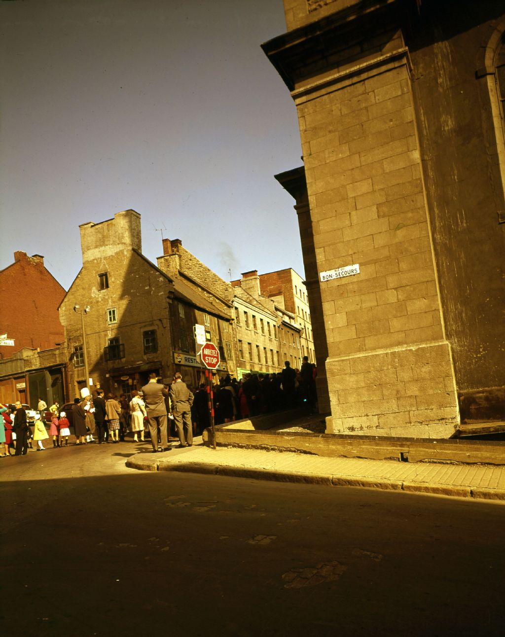Parade sur la rue Saint-Paul, au coin de la rue du Bon-secours, dans le Vieux-Montréal