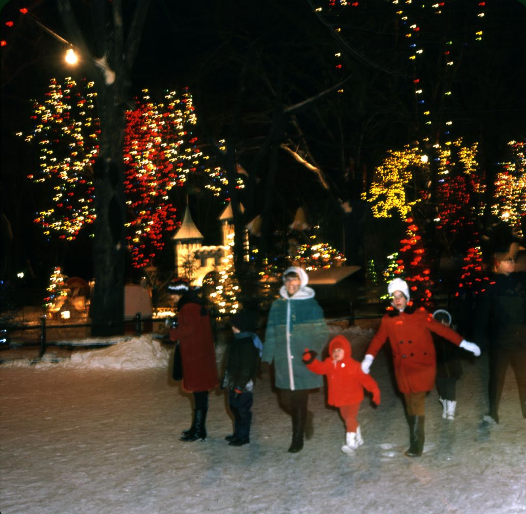 - Visiteurs au Jardin des Merveilles du parc La Fontaine, de nuit en hiver