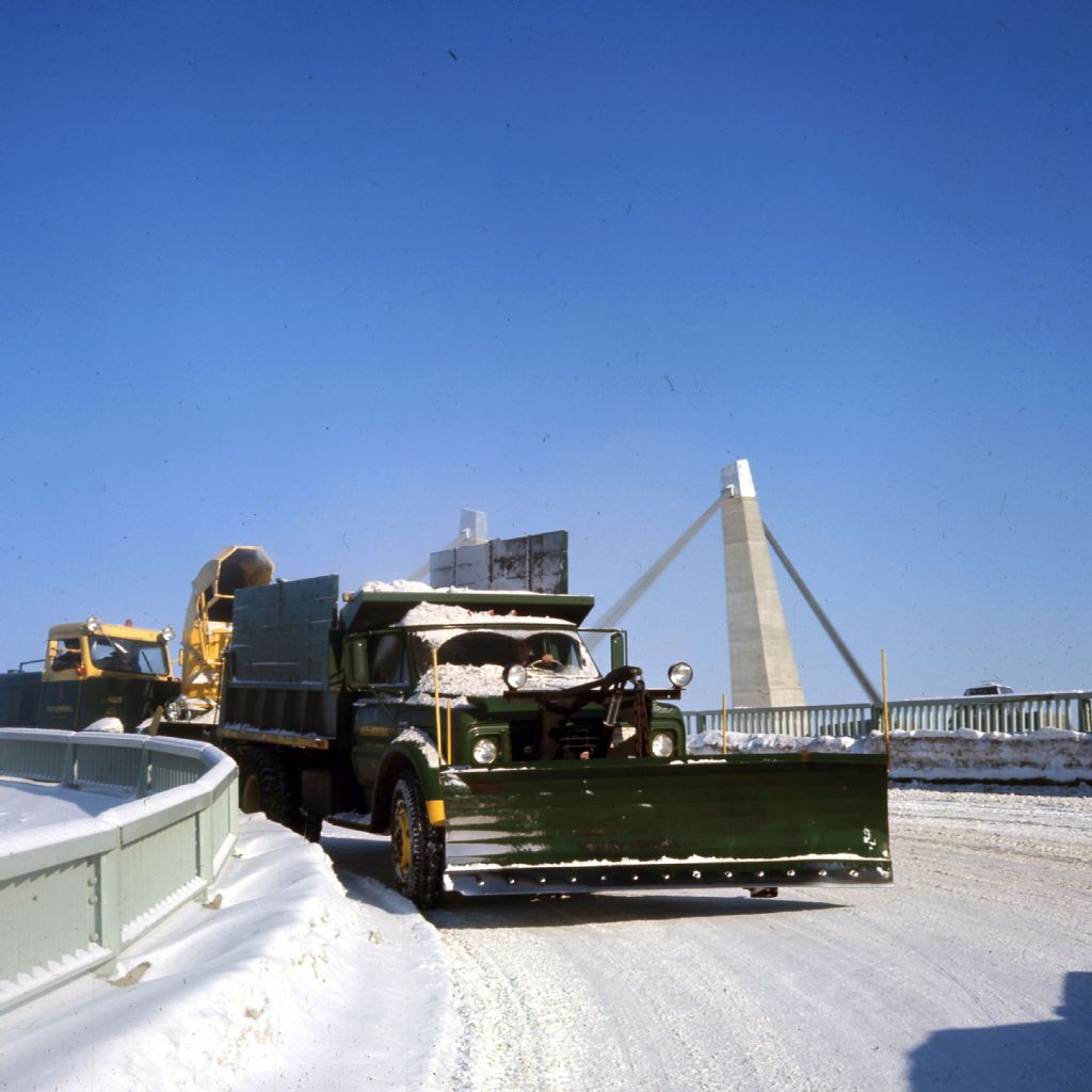 Souffleuse à neige sur le pont de la Concorde durant l'hiver 1968