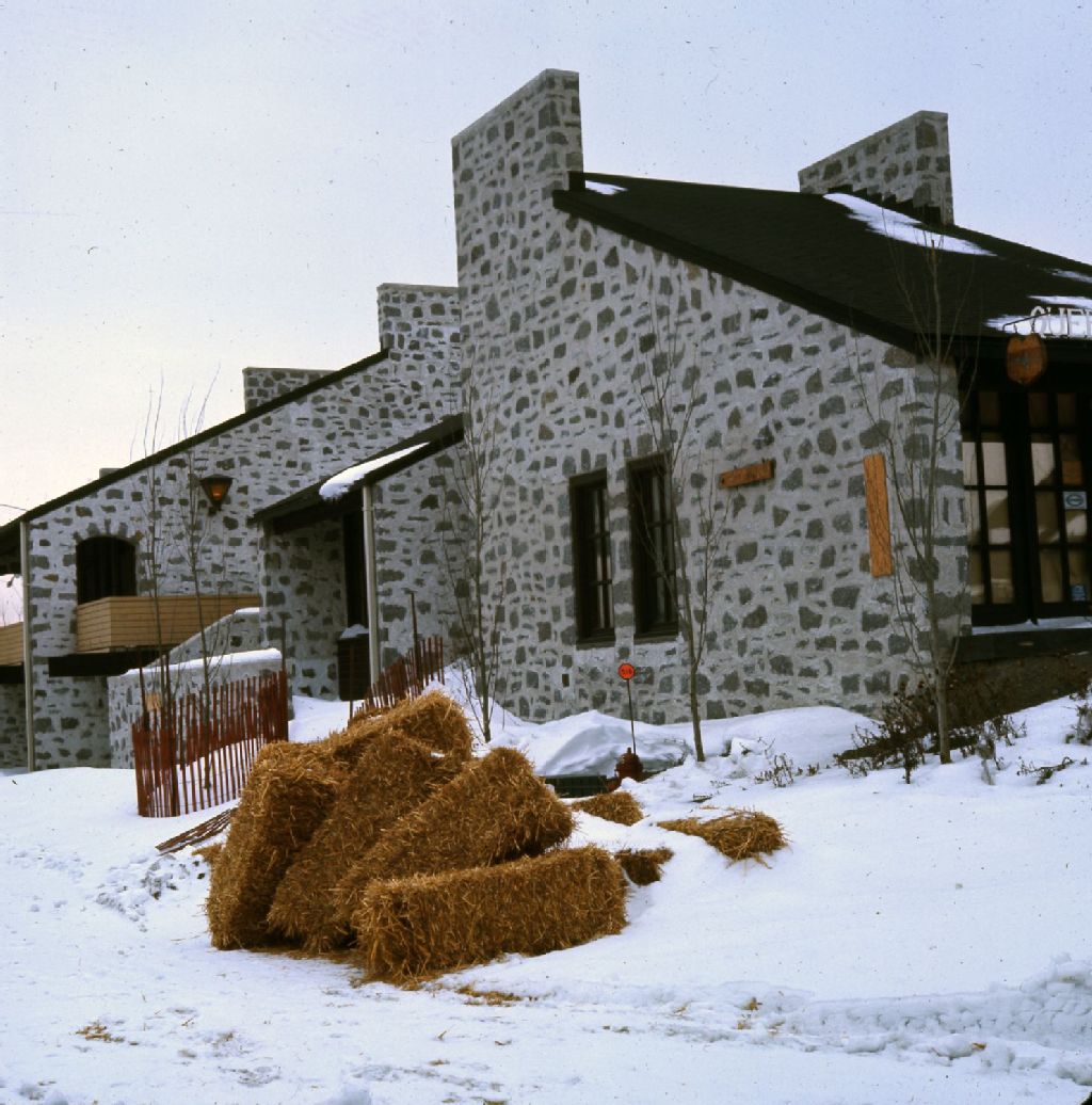 Le site de l'Exposition universelle de 1967 durant l'hiver; reconstitution d'un quartier historique québécois sur le site de La Ronde