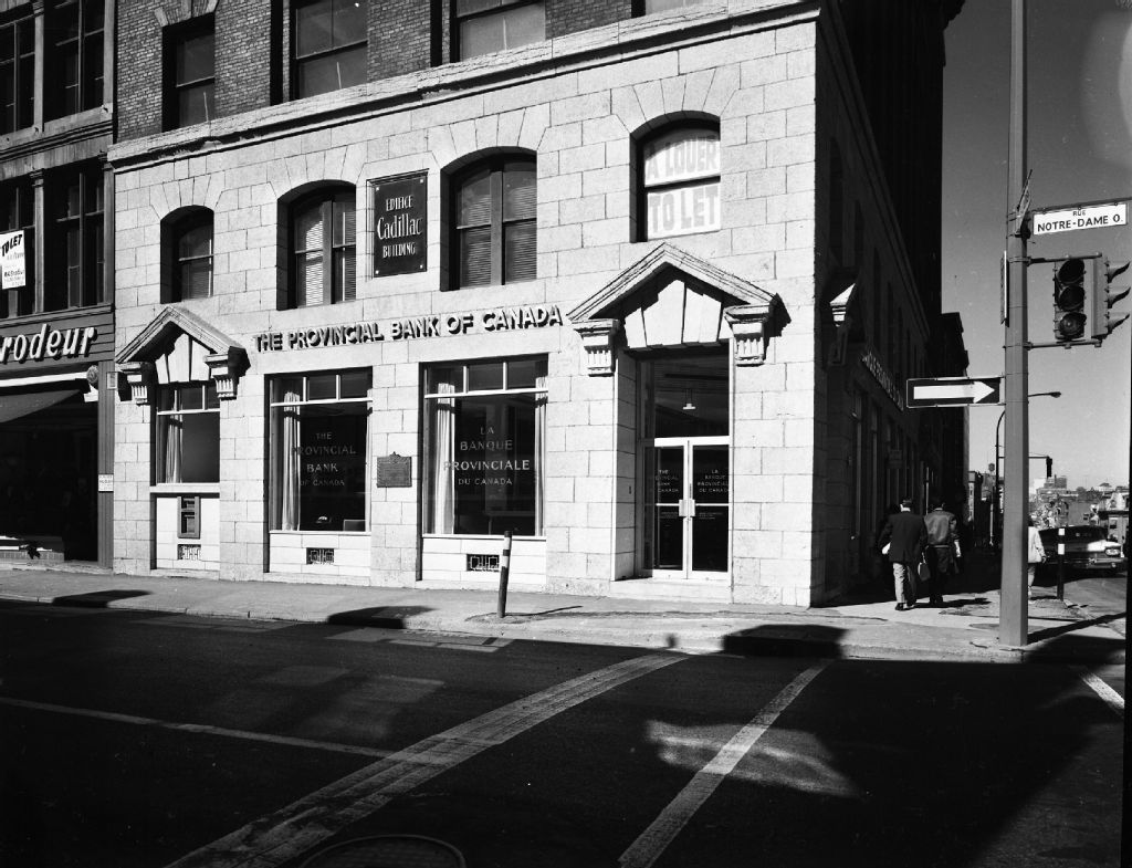 Facade du site de la maison Antoine Laumet de Lamothe, Sieur de Cadillac, coin Saint-Laurent et Notre-Dame, dans le Vieux-Montréal