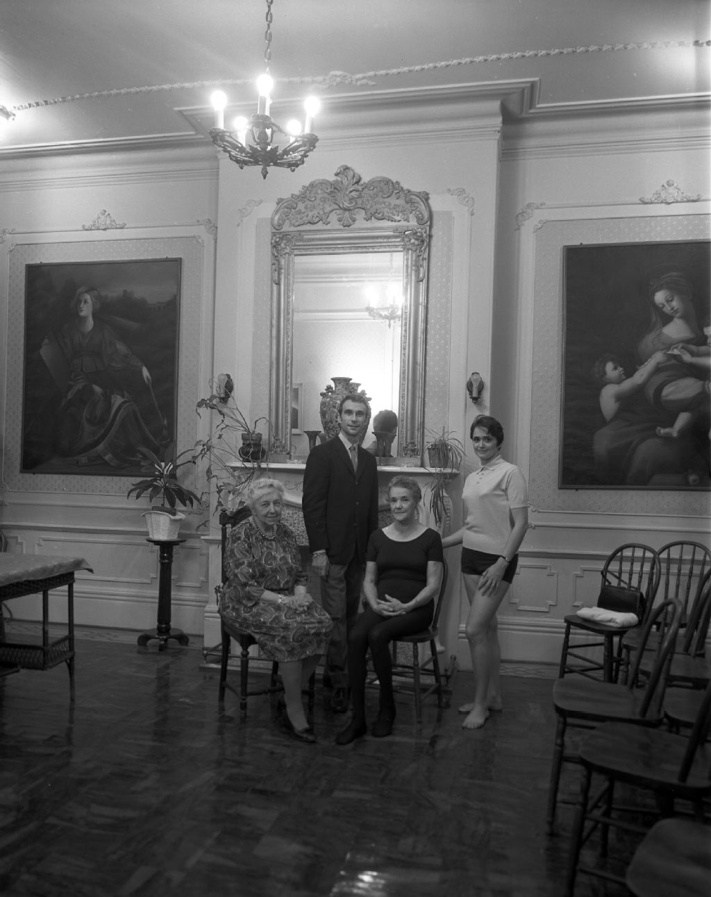 Groupe de yoga chez Mlle Madore, 10 septembre 1968, Archives nationales à Montréal, Fonds Armour Landry, (06M,P97,S1,D851-852), Armour Landry.